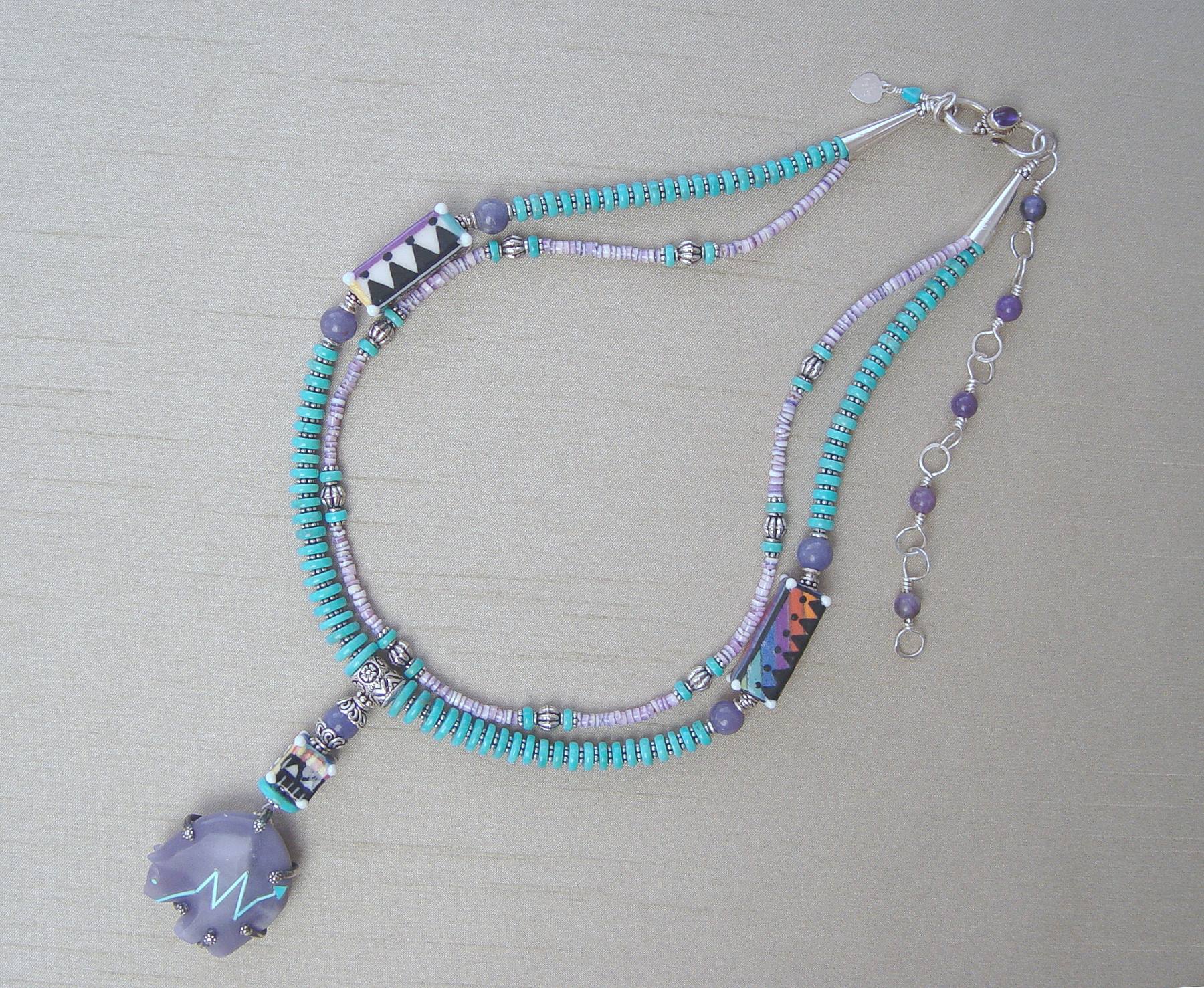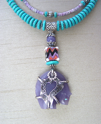 The Lepidolite beads match the little bear well. Ahsian notes that "Lepidolite encourages release of