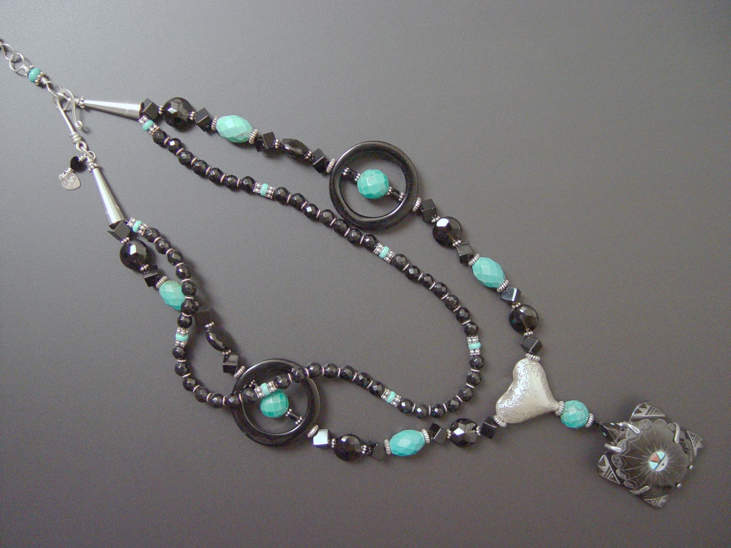 Sams and Carson give the turtle the attribute of Mother Earth. It seems very significant then that this sweet turtle has an inlaid Zuni sunface, bringing together in one the Mother and the Father. Unfortunately, as with the ubiquitous rainbird, it seems to be difficult to find a discussion about the symbol of the sunface. The Sun-father is, according to Cushing, revered as the "Holder of the Paths of Life."