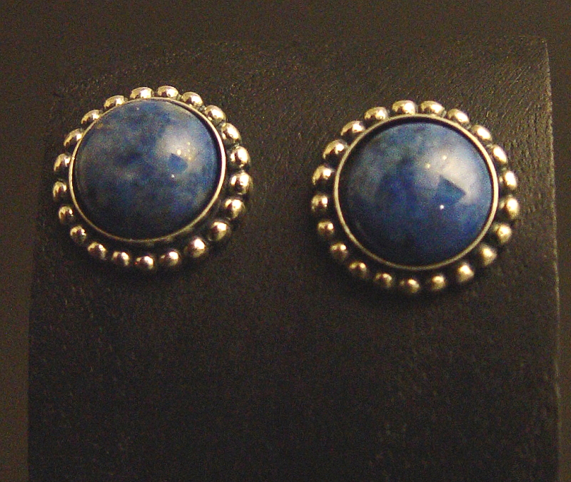 Simple post earrings with nice denim lapis cabochons. Denim lapis is a softer, lighter blue than regular lapis and resembles medium wash blue jeans. Perk up anything denim with these little ear jeans.