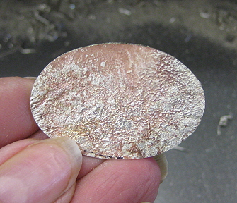 ![]() Photo 1 The reticulating silver must be heated and pickled (soaked in acid) about 10 times before the surface will start to crinkle up. Here it is at heating number 6. It still looks like a flat sheet of silver.