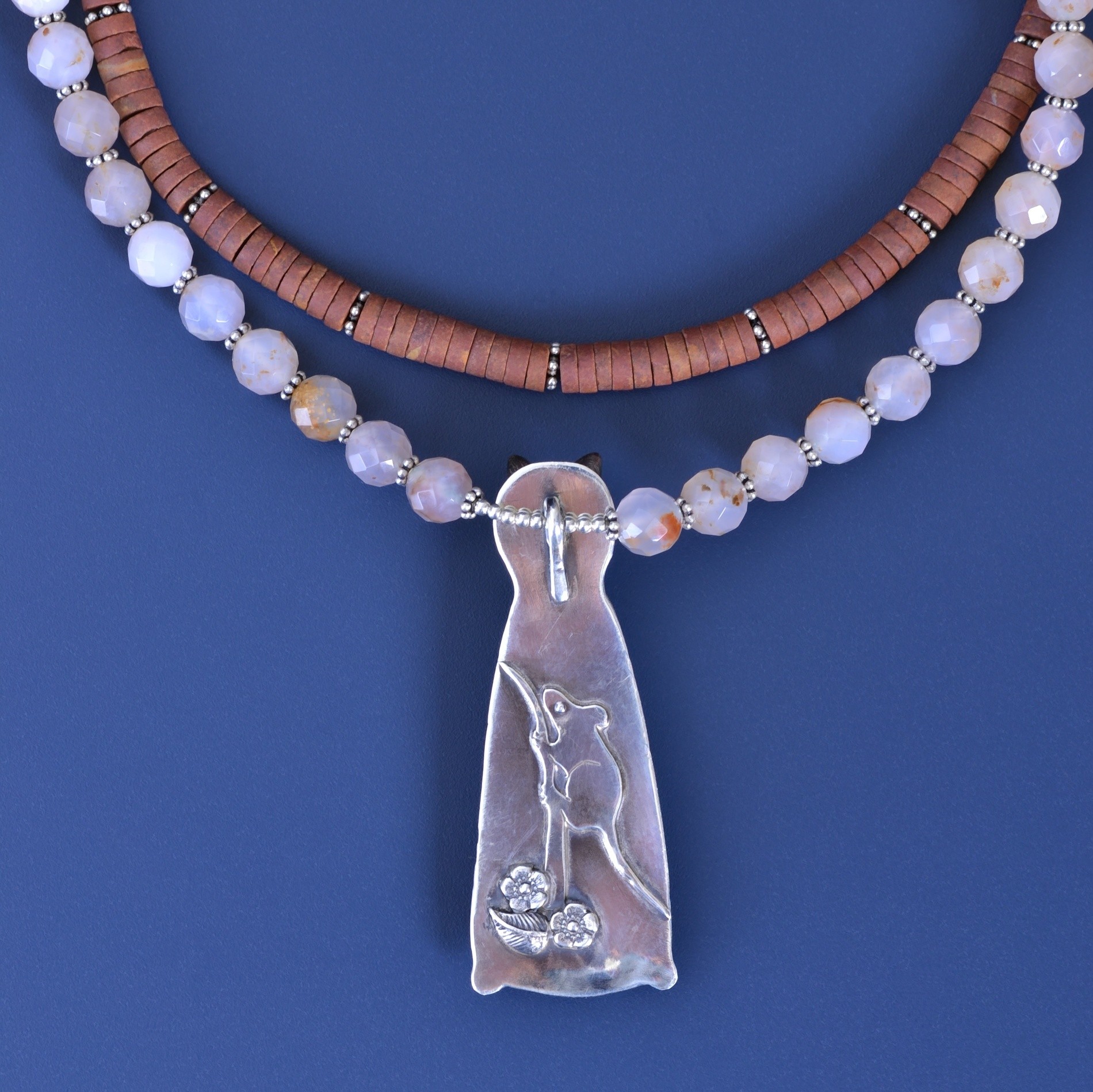 Enough heavy concerns and deep thoughts! I hope you will order this piece, celebrate the wisdom of wolf and have a little laugh at the white-footed mouse who hides on the reverse. Perhaps wearing it will give you the opportunity to discuss the wolf with someone who has no understanding of these marvelous creatures.