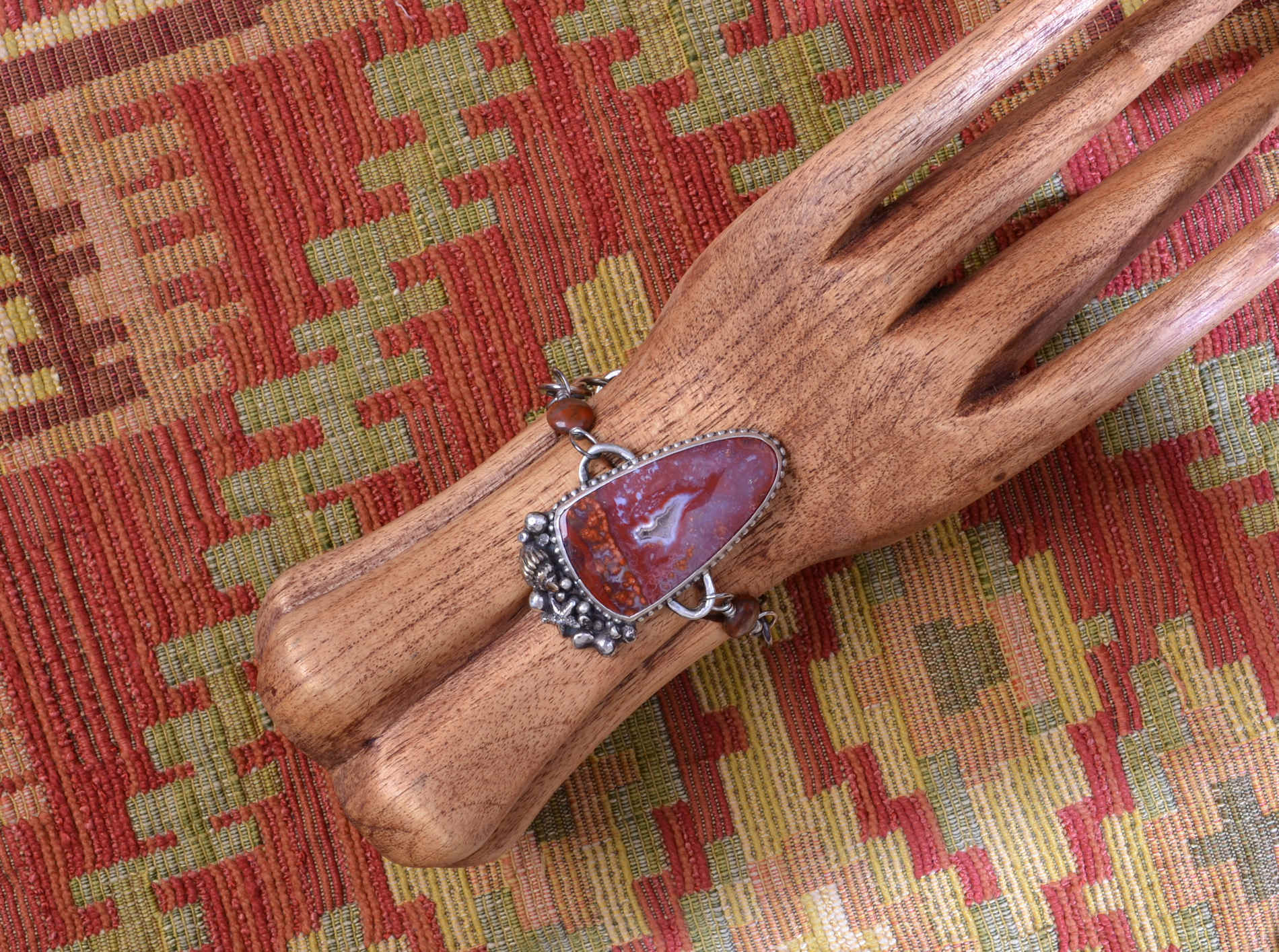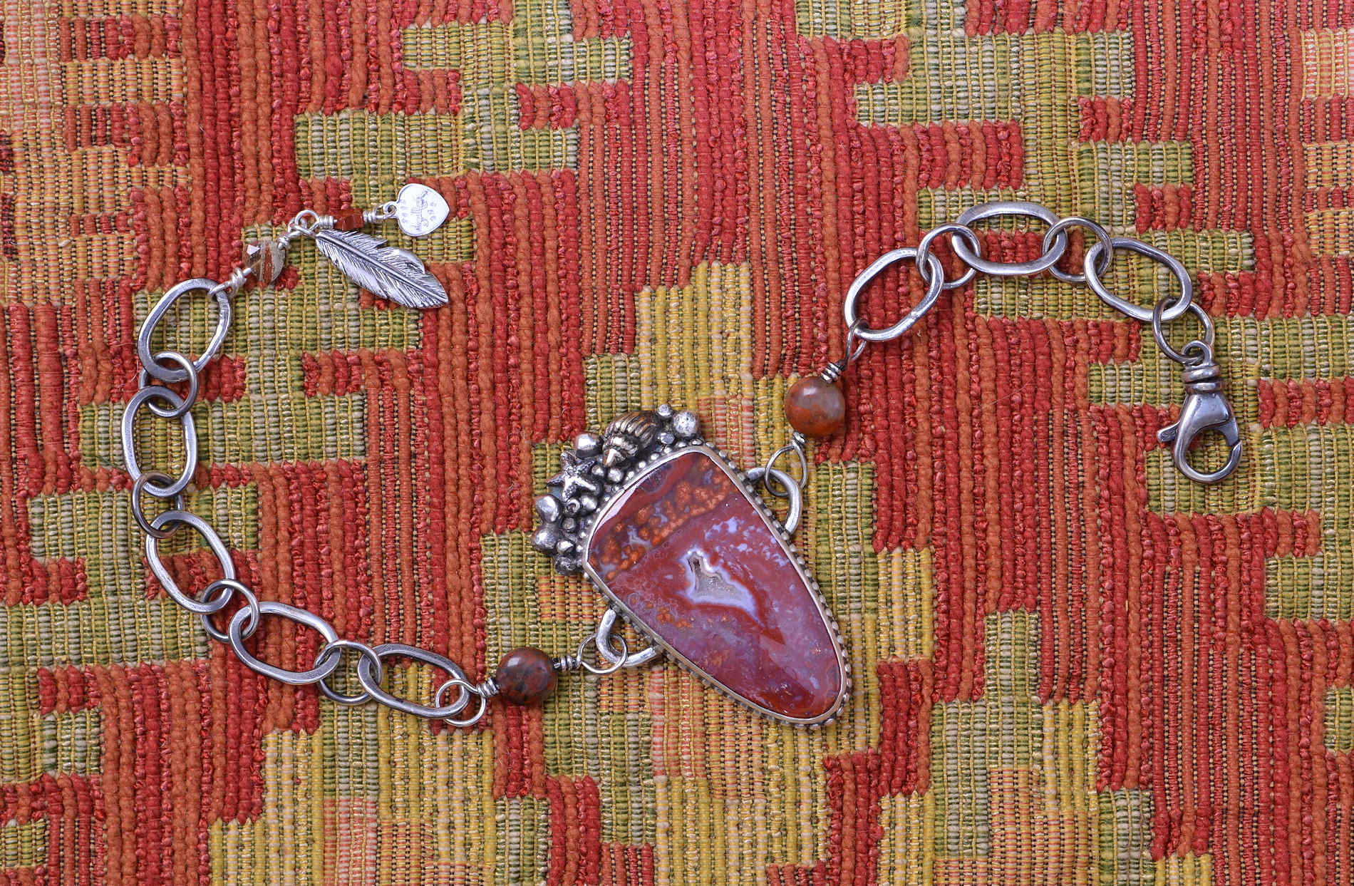 *Included with the bracelet is a "Hooker" -- a little tool which enables you to comfortably hold the feathered end of the bracelet while hooking the lobster clasp in the chain. Most people can hold the end of the chain easily without the tool, but if you've also been a programmer since the earliest days your hands might complain a bit if asked to do such a thing. From experience I can tell you that the tool is a big help. It can also be used to pull inconvenient zippers, etc.