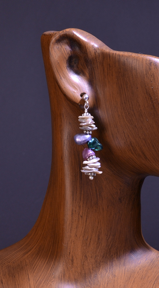 You may not have seen Covellite used in jewelry before,... in fact you may not have ever seen Covellite before. Wiki calls it "a rare copper sulfide mineral" and says it is ubiquitous in copper ores. Do you ever get the impression that the various Wiki editors don't bother to read the whole discussion when they make changes? What exactly do they mean? Copper sulfides don't seem all that rare based on other Wiki articles, and copper deposits can hardly be called rare, so how can our Covellite be both rare and ubiquitous? A geologist came to my most recent show and was talking about testing his students, so I gave him a little test, namely what is our little stone? He couldn't say though when I said Covellite he immediately said "copper sulfide." So obviously he knows the stuff. Perhaps it is "rare" to find visible streaks of Covellite in matrix despite its ubiquity??? Or maybe gemmy Covellite crystals are rare? At any rate, what we have here is a greyish white matrix with an interesting iridescent blue lightning streak of Covellite running through it. (And if you want to read the Wiki article on it, you'll find it has a fascinating and non-obvious structure-- very interesting!)