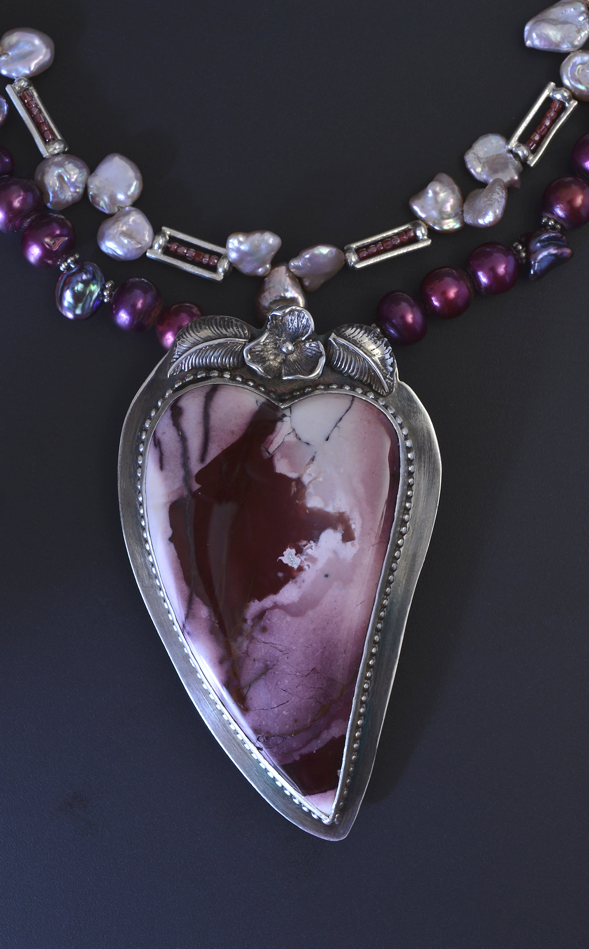 To get back to our assuredly non-Mook necklace, I put an overlay of a dancing red-crowned crane on the back of the heart because of the way cranes celebrate their love. While many birds perform extraordinary mating dances, the monogamous red-crowned cranes dance all year 'round which is said to strengthen and maintain their pair bond. So perhaps you will take a lesson from these birds and take your loved one dancing once in a while. Perhaps you would like to wear a fabulous heart necklace when you go. I hope you will order it and fall in love all over again.