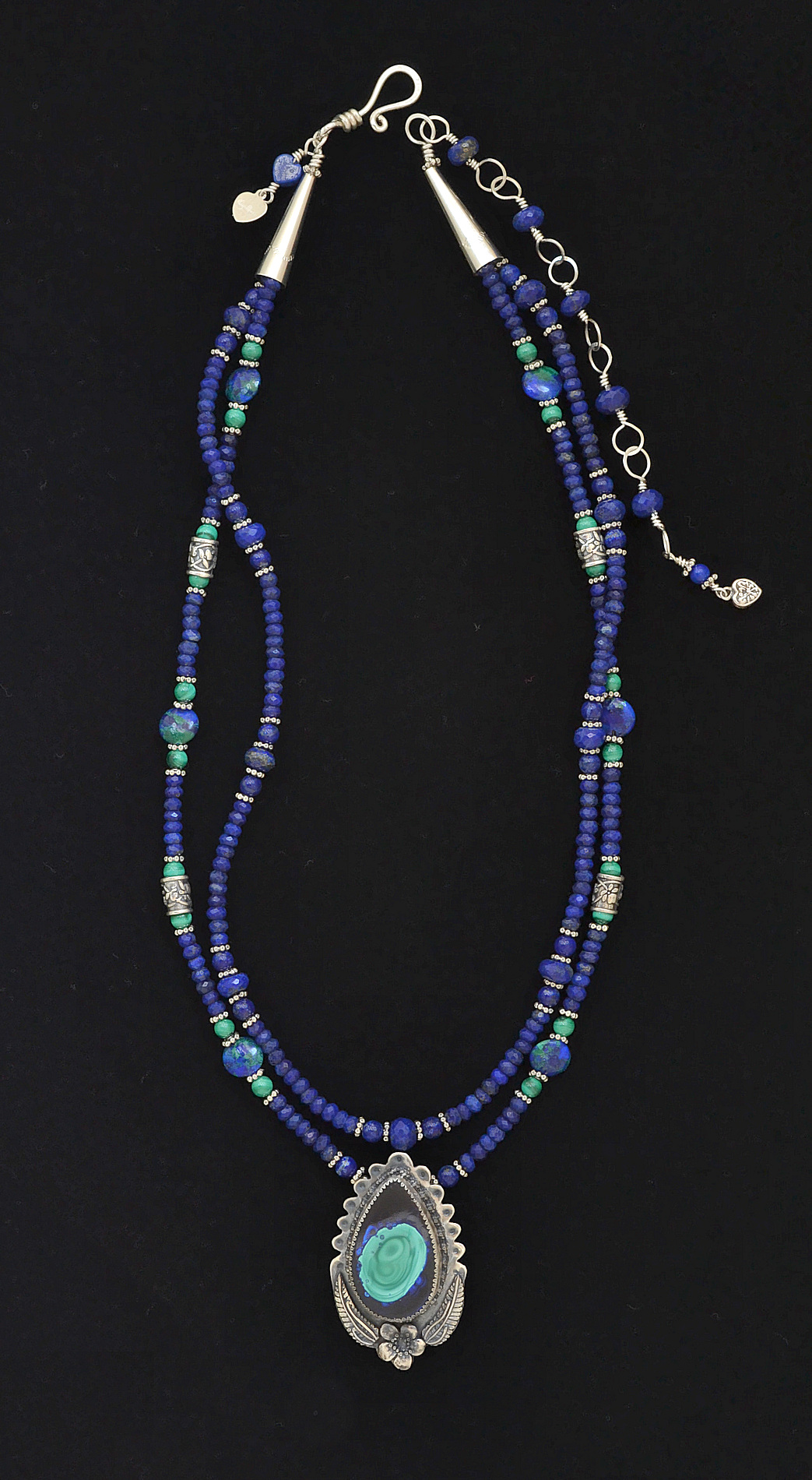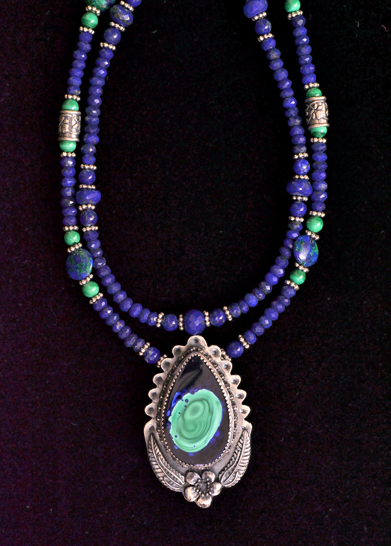 An amazing Azurite with a Malachite flower! No, I didn't paint the stone. The flower is a natural feature. Description will follow soon...